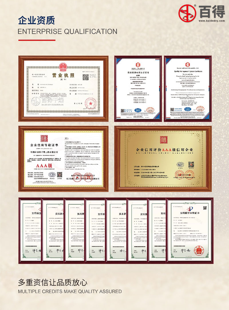 “百得干燥”部门架构完善,人员配置充分。技术力量依托多名在干燥领域拥有十几年丰富经验的技术人员,以新型热传导型干燥机为科研重点,汲取德国技术的设计原理及数据分析之精华,并同多所科研院校共同深度开展产学研合作。公司成立了热传导型干燥综合实验室,突破传统热传导型干燥的限制,成功研发出KJG-M型密闭式空心桨叶干燥机、PLG-Z型真空盘式干燥机等。产品取得多项国家发明专利和新型实用专利,广泛应用于固废干化、农药和精细化工等领域,得到行业用户高度好评。