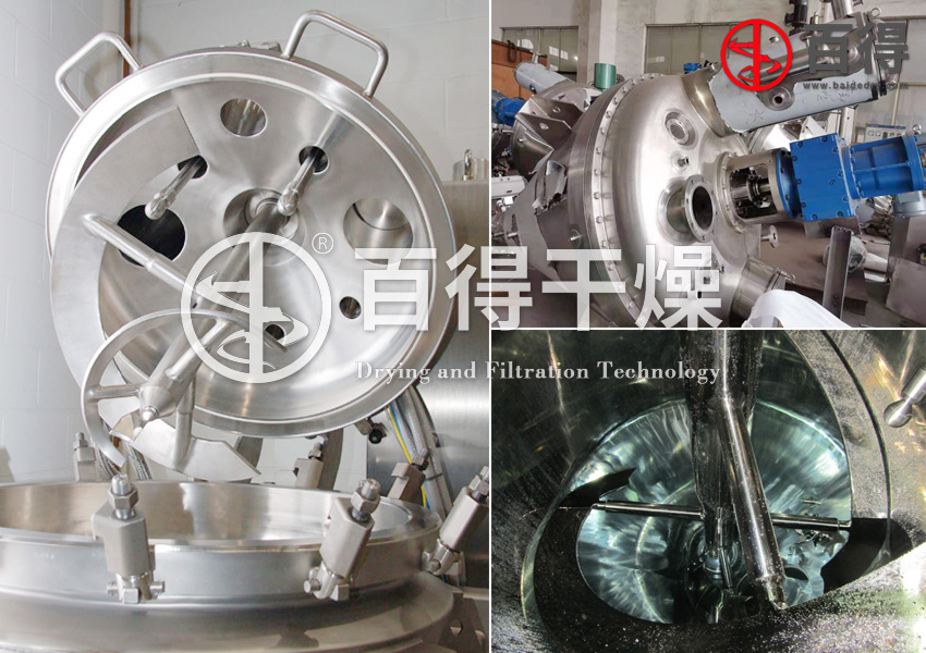 ⑤ 搅拌器底部紧贴锥体底部与出料阀密封球面,避免了死角,提高干燥和混合效率,排料干净无残留。