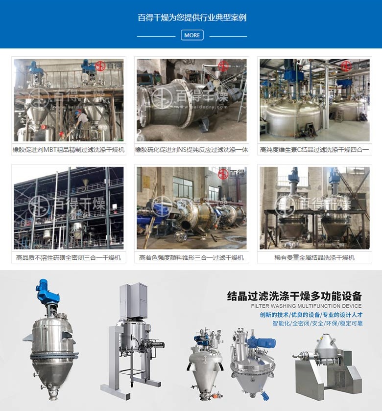 过滤洗涤干燥机是在一密闭容器内先后完成搅拌、反应、过滤、清洗脱液、干燥等工艺过程。该设备具有结构简单、工艺流程简化、生产、无交叉污染、物料更换便捷,自动化程度高等特点,同时可大大降低十二碳长链二元酸精制工艺所需厂房的体积,基础投资低。它广泛应用于精细化工、农药、石油、食品、印染、医药等行业,具有以下特点: