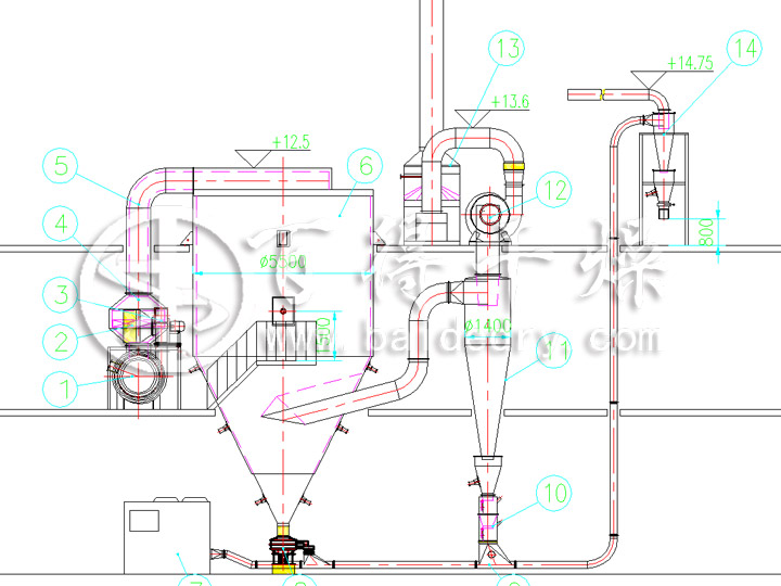 出料及除尘系统:塔底+一级旋风除尘+水膜除尘器