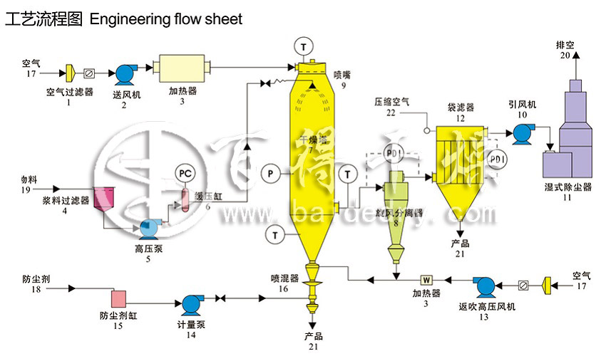 ⑤ 设计了合理的主塔直筒体的高径比,以保证物料足够的停留时间,保证喷雾干燥效果。