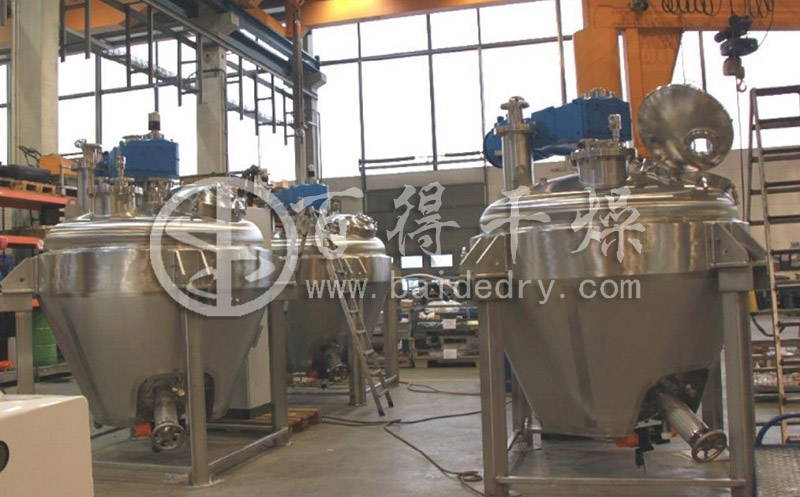 真空干燥机、真空箱式烘3~5倍。百得干燥开发的真空单锥干燥机结合特殊干燥工艺,能适应粘度大、热穿透性差,易滚球、易抱团成块的物料的干燥。