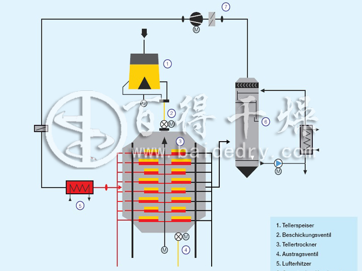 百得干燥在孜孜不倦的吸取和借鉴国内外技术精髓,对传统防爆型盘式干燥技术的优化与升级,设计开发的闭路循环盘式干燥机可解决了物料产生的氧化分解或爆炸危险的干燥难题。此系统有有以下特点: