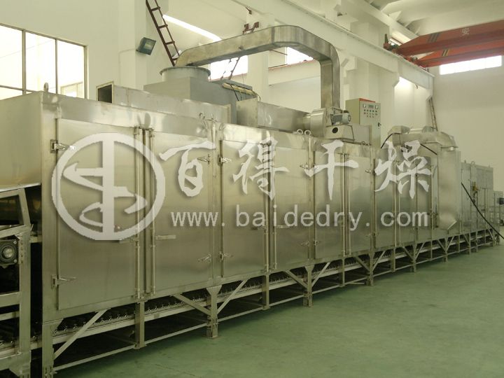 (1) 氨基模塑料专用网带式干燥机的调节参数也是比较多的,因此它也有比较大的生产弹性。为了保证生产能力,在选用热源,送风机或排风机都要留有余量。