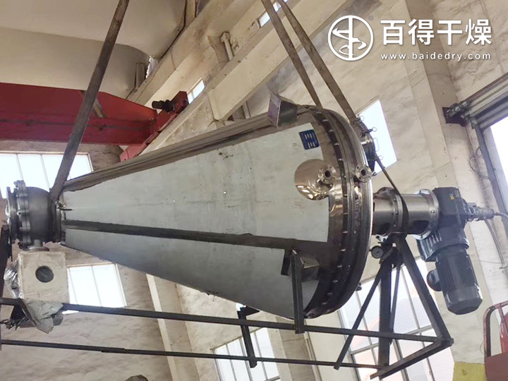 真空单锥干燥机是一种集减压蒸馏、粉碎、混粉、干燥为一体的高效多功能全密闭立式真空干燥设备,干燥效率是同等规格双锥回转真空干燥机、真空箱式烘3~5倍。结合百得干燥特殊干燥工艺,能适应粘度大、热穿透性差,易滚球、易抱团成块的物料的干燥。