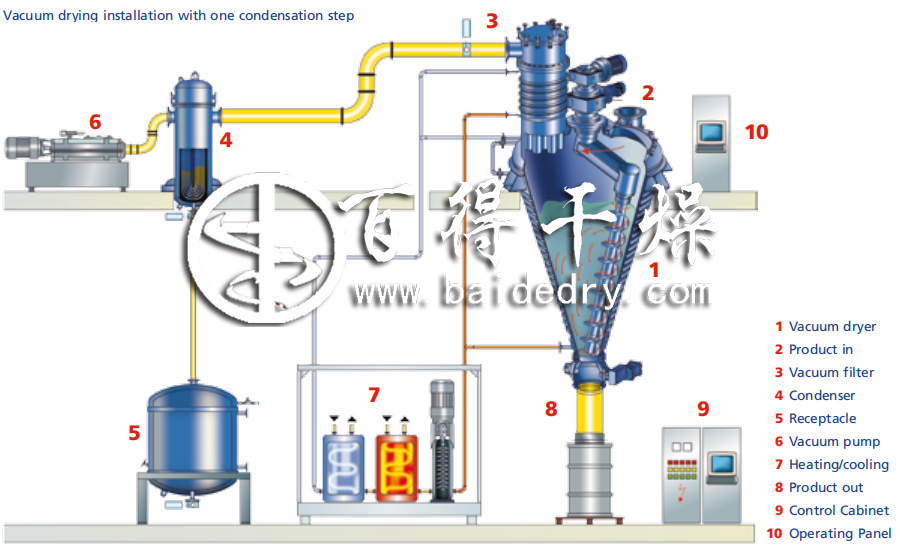 ② 常州百得真空单锥干燥机处理量范围较宽,相对于处理量,整个工艺过程的能耗非常低。