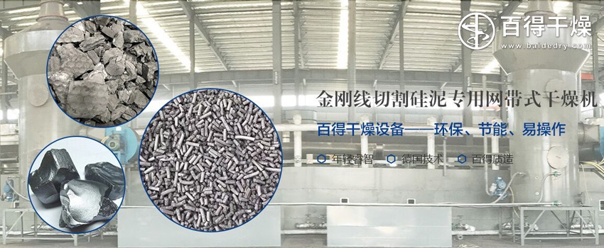 现有的金刚线切割硅泥制粒干燥机干燥效果差,耗能高,而且排放的尾气污染了环境。常州百得申请的硅泥干燥机发明专利所要解决的技术问题是针对上述现有技术的不足提供一种智能化金刚线切割硅泥制粒干燥机,其实现各个单元的独立循环,强制通风,具有较高的稳定性和高效节能的优点,有效清理网带上的粘结物料。