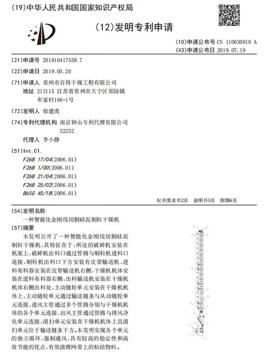 常州百得干燥接到国家专利局通知,我司申报的《一种智能化金刚线切割硅泥制粒干燥机》获得了专利证书,为了满足…