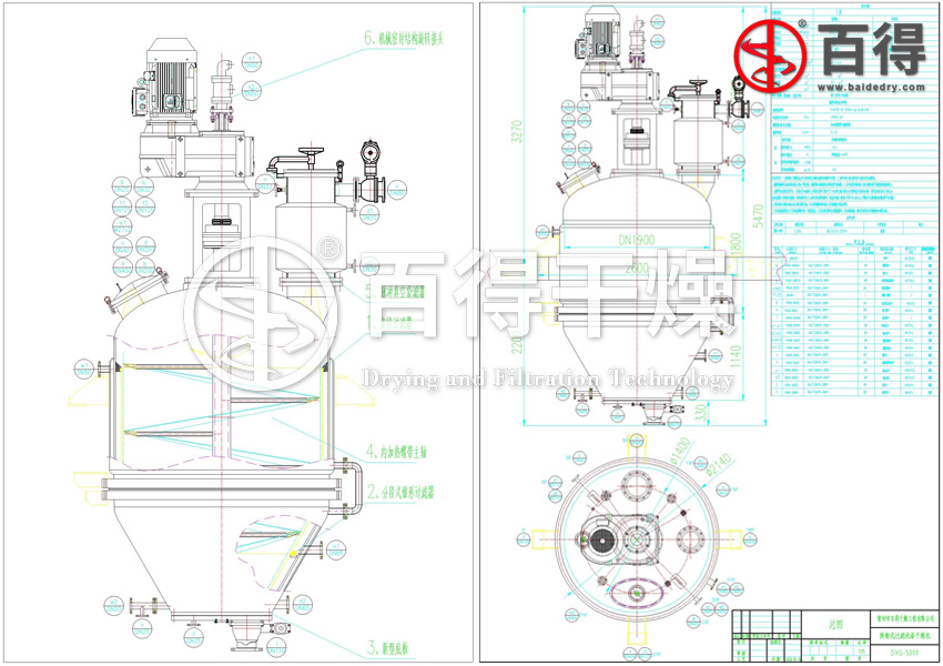 三元材料前驱体的主流工艺流程为:合成、过滤、洗涤、干燥以及三元材料配混料、烧结、粉碎、除铁等工序,百得干燥分析现有多种过滤洗涤设备的优势和劣势,为满足三元材料前驱体生产工艺高品质、高效率的要求,终于研制成功了集过滤、洗涤于一体的多功能筒锥式二合一设备,兼有反应、萃取、结晶、浓缩、干燥、混合、破碎等多项功能,以满足三元材料及其前驱体的产业向智能化、大产能、低能耗、环境友好方向发展的需求。