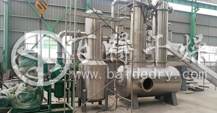 真空耙式干燥机更经济合理,它的热量消耗仅为一般瞬时干燥的1/3。如果干燥前还须加水稀释然后喷雾干燥时,它的热量消耗则比真空耙式干燥大8~10倍。