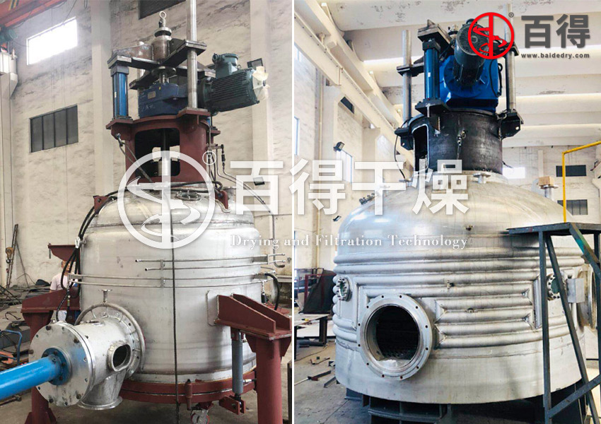 三合一设备的干燥工艺可以采用热风干燥或真空干燥。采用热风干燥或真空干燥时都必须用洁净的惰性气体,因为干燥过程中会有粉尘产生,要考虑设备操作环境为防爆。目前,三合一设备主流的干燥工艺为真空干燥。影响真空干燥工艺的因素主要是真空度、干燥时间、搅拌桨特性等。