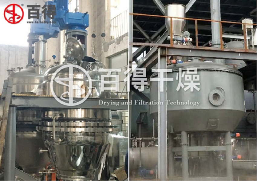 过滤、多次洗涤过滤、干燥等单元操作,这些单元操作通常由结晶罐、压滤机或离心过滤机、洗涤槽以及干燥机等单元设备单独运作,多种单元设备成一个长流程的大装置,设备间通过管道或其他方式输送物料每个单元操作对应相应的单元设备,设备分散布置,使整个生产过程的厂房面积大幅度增加,同时也大大提高了设备的投资。