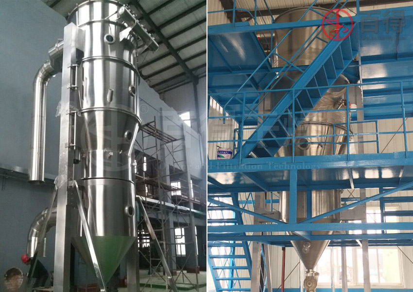 针对上述问题,根据多年来在精细化工后处理生产线专用设备生产调试中积累的丰富经验并结合国外同类设备的特点,常州百得干燥研制开发出了新型自动出料沸腾干燥机并推向市场。该设备具有制粒、包衣、干燥功能和防爆性能,现已广泛适用于农药原药、橡胶助剂、新材料等精细行业。