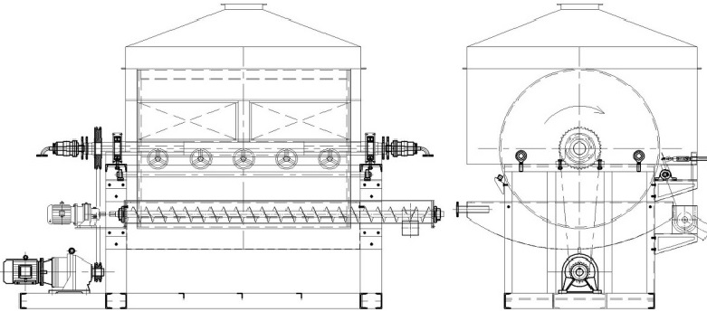 注:如客户需要,可为客户设计制造上部进料双滚筒干燥机。