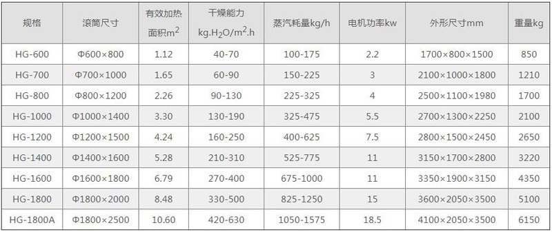 滚筒刮板干燥机 技术参数表
