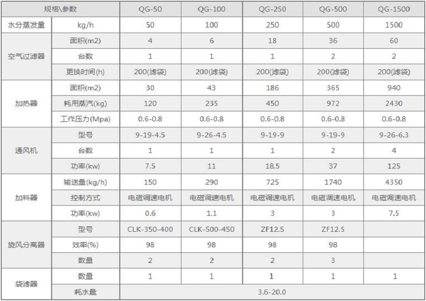 QG气流干燥机适用于制药、化工、食品、建材、塑料等行业的粉状物料的干燥除湿,例如:淀粉、鱼粉、食盐、酒糟、饲料、面筋、塑料树脂、矿粉、煤粉、糖氯酸、A·S·C笨甲酸、2·3·酸,聚氯乙酸聚丙稀、硫酸钠、焦亚硫酸钠等多种物料的干燥。我公司就气流干燥设备对外咨询,并代为设计制造非定型气流干燥机。