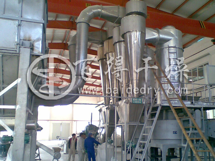 5、物料在干燥机内的停留时间过长,造成物料破碎程度大,颗粒极细,布袋除尘器很难收集细粉,造成粉尘逸出,工作环境非常恶劣。