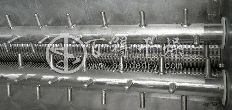 输送系统是采用网带通过两边链条拖动,在干燥箱内回转,输送系统要考虑网带的承载能力,由于湿物料较重,网带下撑杆一定要密,一般一个连接一根撑杆。在网带两边要有挡料板,一方面防止漏料,一方面防止热风短路,影响干燥能力。